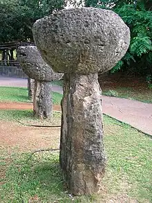 - Pilier de pierre coiffé d’un chapiteau hémisphérique, également en pierre, avec le côté plat vers le haut, typique des îles Mariannes.