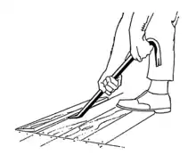 - (Maçonnerie) Nom donné dans le monde de la maçonnerie à un outil nommé par ailleurs pince-monseigneur ou pied-de-biche. Cette barre de métal est utilisée par les maçons pour faire levier et arracher les coffrages, les banches en bois du béton après que celui-ci soit sec et prêt à être décoffrer. Cet outil est couramment utilisé pour la démolition, l'arrachage de bois, parquets, cloisons, etc.