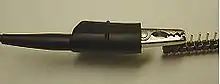 - (Électricité) Sorte de pince dentée qui permet une connexion rapide d’un câble à un conducteur.