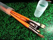 - Dispositif de rangement de pinceaux d’art, sous forme d’étui tubulaire ou de trousse.
