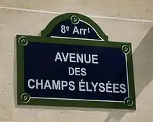 Plaque de rue de l’avenue des Champs-Élysées (à Paris).