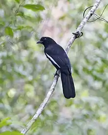 - (Ornithologie) Corvidé noir sud-asiatique avec un liséré blanc sur les ailes, qui vit dans des forêts tropicales ou subtropicales.