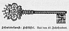 - (Serrurerie) Garniture située sur le rouet d'une serrure, et entaille qui lui correspond sur le panneton de la clé.