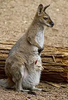 Un wallaby avec son petit dans sa poche ventrale (2).