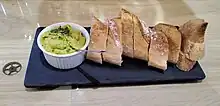 - (Cuisine) Purée similaire au guacamole, mais utilisant comme ingrédient principal le petit pois en remplacement de l’avocat.