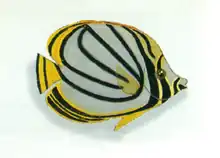 - (Zoologie) Espèce de poisson osseux marin de récif corallien, un poisson-papillon qui a une série de bandes noires convergeant vers la tête.