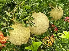- Nom donné au fruit et parfois à l'arbre qui le produit : Dillenia indica. de la famille des Dilleniaceae. → voir pommier-éléphant.