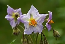 La pomme de terre commune est une plante herbacée vivace qui mesure entre 0,5 et 1 mètre de haut et présente de jolies petites fleurs.