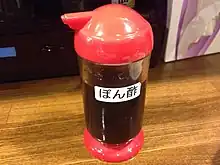 - (Cuisine) Sauce japonaise à base de sauce de soja et d’agrumes.