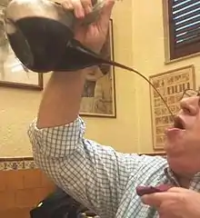 Personne buvant au porron.