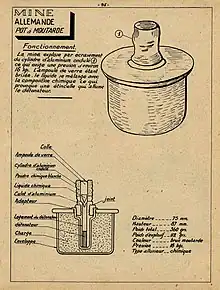 Sur les chemins et les fossés se trouvent de nombreuses petites mines dites : « pot à moutarde » à cause de leur ressemblance avec ces objets. Placées en grand nombre […] elles sont dangereuses sur un rayon de 15 mètres au moins.