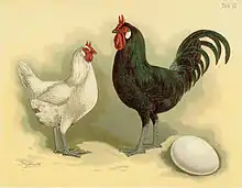 Des poules de La Flèche, femelle et mâle, en 1885.