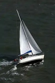 Ce voilier a pris un ris de grand-voile et enroulé le génois pour affronter le vent.