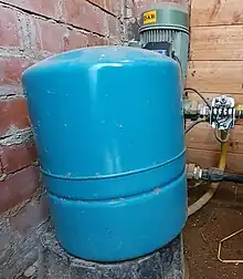 À droite de la cuve bleue, un pressostat électro-mécanique.