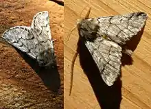 - (Zoologie) Un insecte lépidoptère (papillon) de nuit de la famille des notodontidés (Notodontidae) dont le dos des ailes antérieures est de couleur grise, avec deux bandes foncées parallèles chez le mâle, les postérieures blanches marquées d'une tache sombre à l'extrémité postérieure.