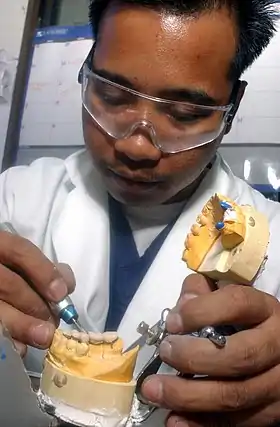 - Personne spécialisée dans la fabrication de prothèses dentaires : couronnes, bridges, dentiers etc.