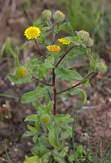 - (Botanique) Espèce de plantes de la famille des Astéracées, à fleurs jaunes, croissant dans les milieux temporairement humides (ornières, fossés, zones envasées...).