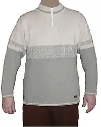 - (Habillement) Pull dont le col s’ouvre avec un zip.