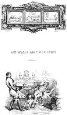 Qui m’aime aime mon chien. — Grandville, Cent Proverbes, 1845