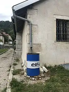 Un bidon récupérateur d’eau de pluie.