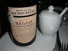 Une bouteille de régnié.