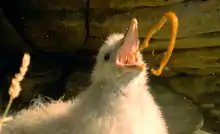 - (Ornithologie) Rendre la nourriture déjà ingérée pour nourrir ses petits ou se défendre.