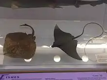 Une raie tachetée à gauche, et un aigle de mer à droite.