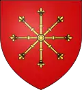 - De gueules au rais d’escarboucle pommeté et fleurdelysé d’or, qui est de la commune de Ray-sur-Saône de Haute-Saône → voir illustration « armoiries avec un rais d’escarboucle »