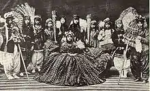 - (Nom commun 1) (Siècle à préciser) Du sanskrit राज्ञी, rājñī et au delà, d'une racine indoeuropéenne dont est issu le latin regina et le français reine.