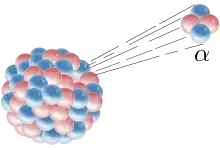 - Allemand : α-Strahlung (de) féminin, Alphastrahlung (de) féminin