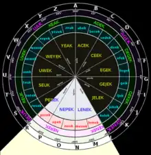 - Zone radiale entre R et L (roue matricielle), la zone qui s’étend de R à L dans le sens dextrorsum, c’est-à-dire la majeure partie du disque.