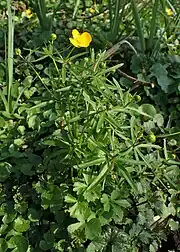 Renoncule tête d’or, avec ses deux types de feuilles.