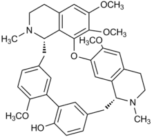 - (Chimie)(Rare) Alcaloïde extrait de divers arbres des forêts tropicales d'Amérique du Sud (Pseudoxandra cuspidata ; Chlorocardium rodiei, ...), sa formule brute est C38H42N2O6.