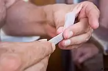 - Substantivement, par ellipse, pour une cigarette roulée à la main.