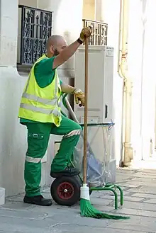 Le balais est le grand classique du nettoyage d'une ville. […] Depuis quelques années, les cantonniers ont leur complément indispensable : le roule-sac dans lequel ils peuvent jeter les détritus, ramassés à la pelle, troisième accessoire du cantonnier.