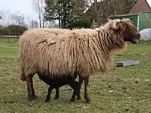 Une brebis et un agneau roux du Valais.