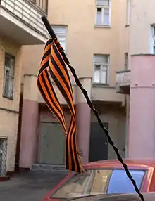 - Ruban à rayures orange et noires, symbole du patriotisme russe.