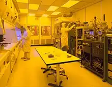 - (Électronique) (Construction) Salle conçue pour maintenir les taux de poussières et éventuellement d’autres agents contaminants, la température et l’hygrométrie à des niveaux spécifiés de façon à pouvoir y réaliser des opérations sensibles à ces facteurs, comme la fabrication des dispositifs à semiconducteurs et les biotechnologies.