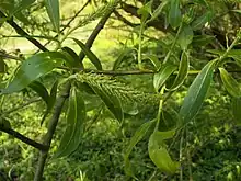 - (Botanique) Espèce de saule à feuilles argentées (par de fines soies) et pouvant produire de l’osier.