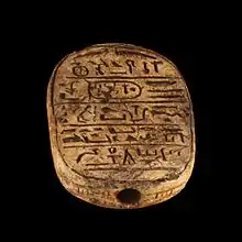 - (Par métonymie) Pierre gravée portant l’empreinte du scarabée sacré chez les Égyptiens.