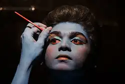 Une artiste de la scène qui se maquille.