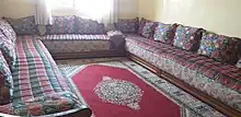 - (Mobilier) Canapé, banquette, pièce principale du salon au Maroc.