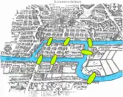 | sept ponts de Königsberg \sɛt pɔ̃ də kø.niks.bɛʁg\ |