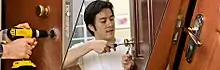 serrurier \se.ʁy.ʁje\ ou \sɛ.ʁy.ʁje\ masculin (pour une femme, on dit : serrurière)