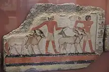 — (Chronique d'Égypte, n°153-154, 2002)Celui-ci avait quant à lui revêtu sobrement un shenti ou long pagne blanc, vêtement hiératique masculin dans toutes les classes de la société, et chaussé de sandales confectionnées à partir d'écorce tressée de papyrus.