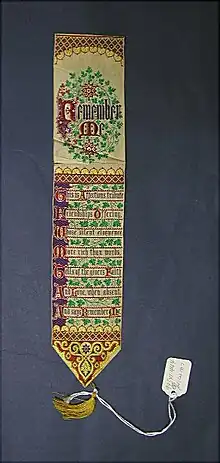 - (Livre) Ruban, collé au dos de l’assemblage des cahiers d’un livre, qui ressort du tranchefile de tête, et sert à marquer une page pour y reprendre la lecture ou s’y référer.