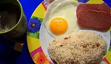 - Mot-valise composé de sinangag (« riz frit ») et itlog (« oeuf (frit) »).