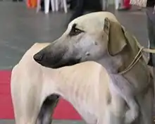 - Race de grand chien lévrier, originaire d’Afrique du Nord, à queue mince, à poil ras, à robe sable et noir.