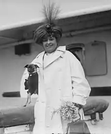 Mulher sobraçando um cão. — Femme portant un chien sous son bras.