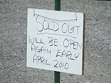 Affiche devant une pépinière fermée en raison de l’épuisement des stocks.